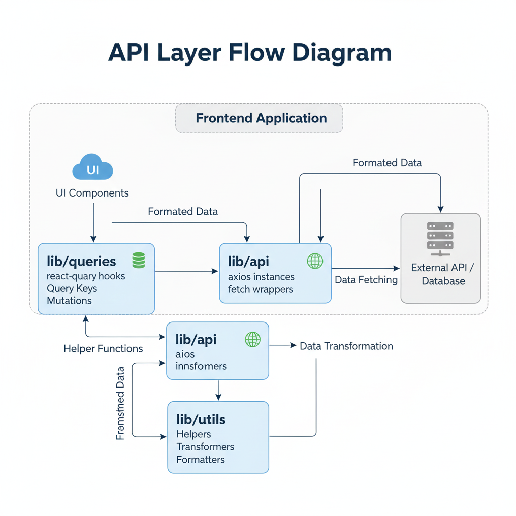 Whether you use REST, GraphQL, or tRPC, keep API logic outside components.